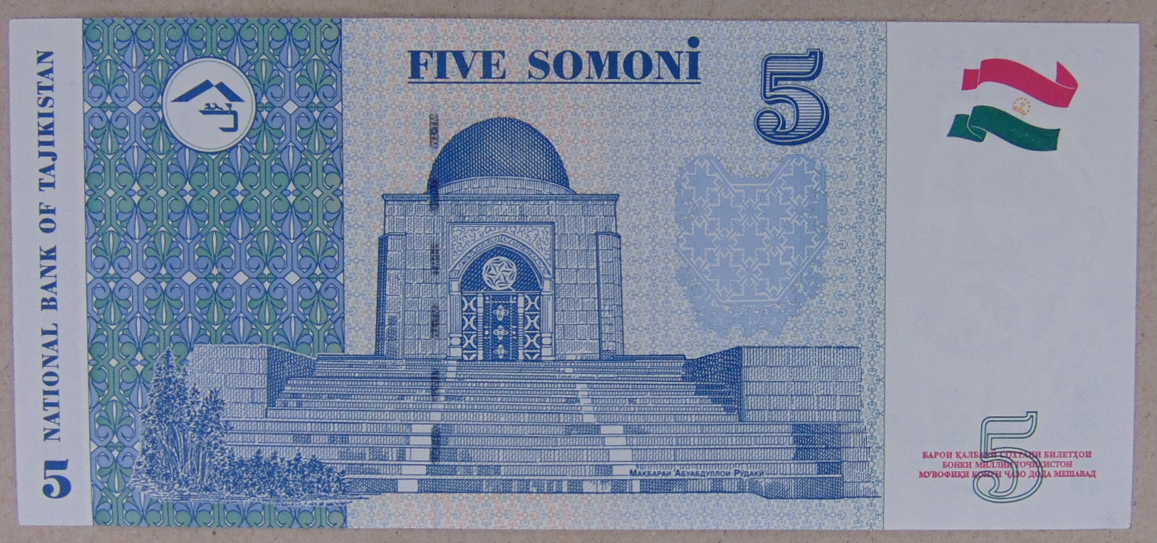 Таджикистан 5 сомони 1999 (2013) UNC арт. 2890