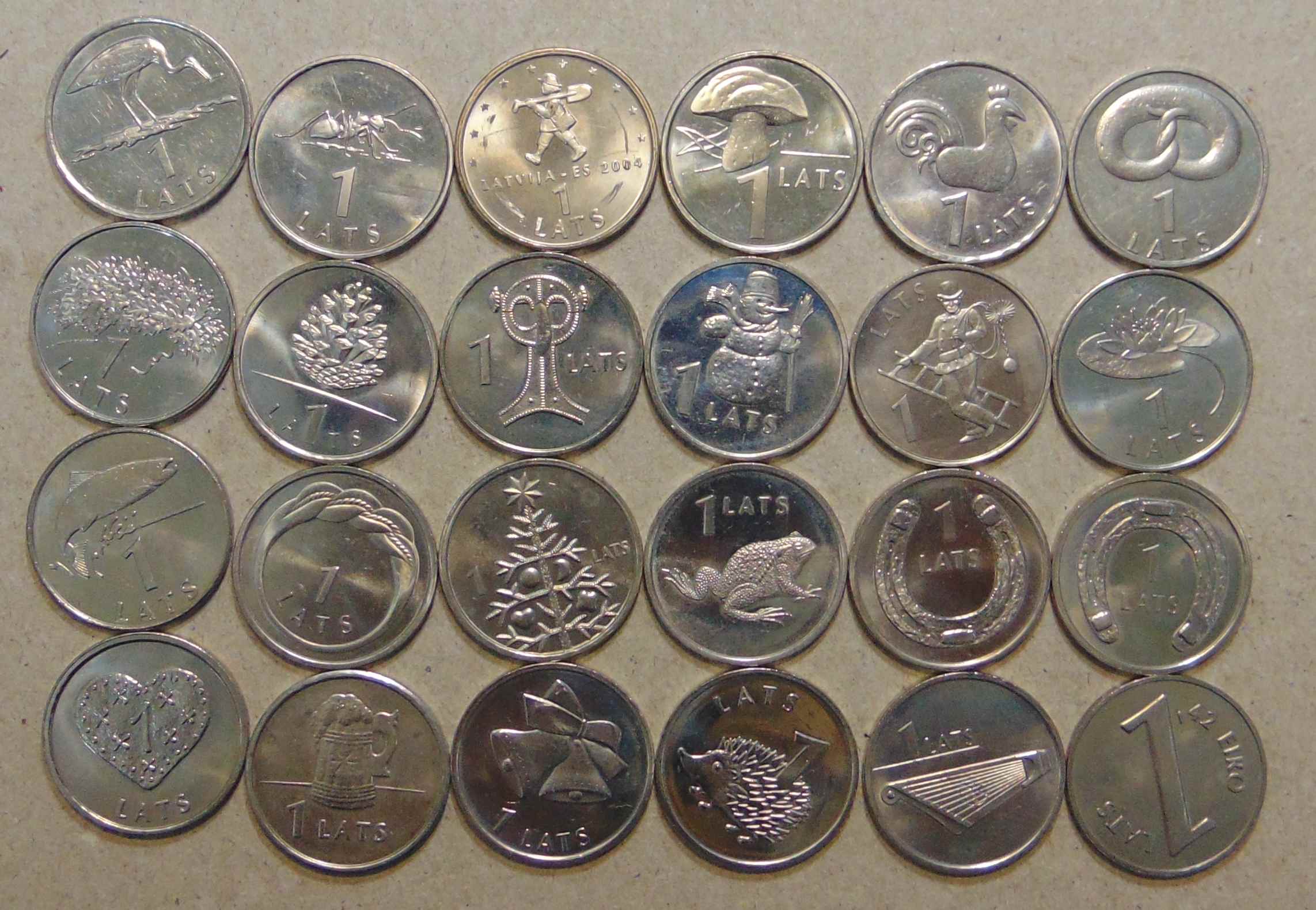 Латвия Набор 1 лат * 24 монеты