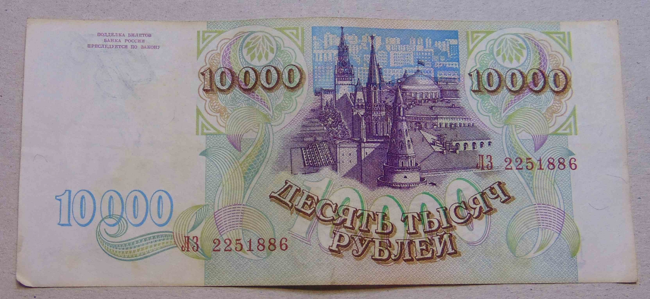 Россия 10000 рублей 1993 Без модификации