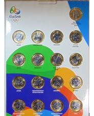 Бразилия 1 реал 2012-2016г Олимпиада в РИО 2016 полный набор 17 монет в альбоме UNC