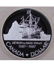 Канада 1 доллар 1987 400 лет проливу Дейвиса. Парусник Детроит. пруф. арт. 3149-63000